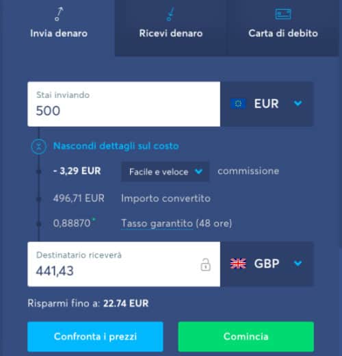 Ad ogni modo sul sito ufficiale è presente un calcolatore che, inserendo l’importo e le valute, ti indicherà l’importo esatto delle commissioni da pagare. Da sottolineare che tali costi sono sempre decisamente inferiori rispetto a quelli sostenuti con una banca tradizionale.